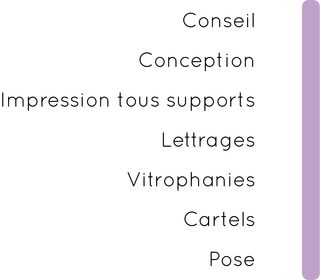 Et pour la mise en place de vos expositions, nous gérons votre projet de la fabrication à la pose, dans le respect du timing. Sans oublier le conseil !